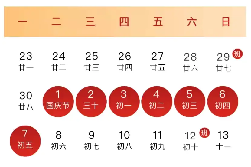2024年10月1日—7日放假,共7天。
